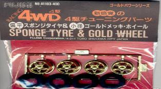 Fujimi Wheel & Tire Set Racing 4WD Spong Tire & Gold Wheel 1/24
